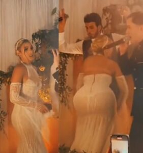 Una joven pareja celebró su enlace matrimonial con una gran fiesta, asegurándose de que sus seres queridos estuvieran presentes para compartir este momento tan especial. Sin embargo, fue la novia quien capturó toda la atención con una actuación de baile que dejó a todos sin palabras. La celebración transcurría de manera habitual hasta que la novia decidió subir al escenario para realizar un baile especial. Con un elegante vestido de novia, rápidamente se convirtió en el foco de todas las miradas. Lo que comenzó como un baile tradicional se transformó en una sorpresa increíble cuando, al moverse, el vestido reveló más de lo esperado, mostrando un atrevido hilo que llevaba debajo.